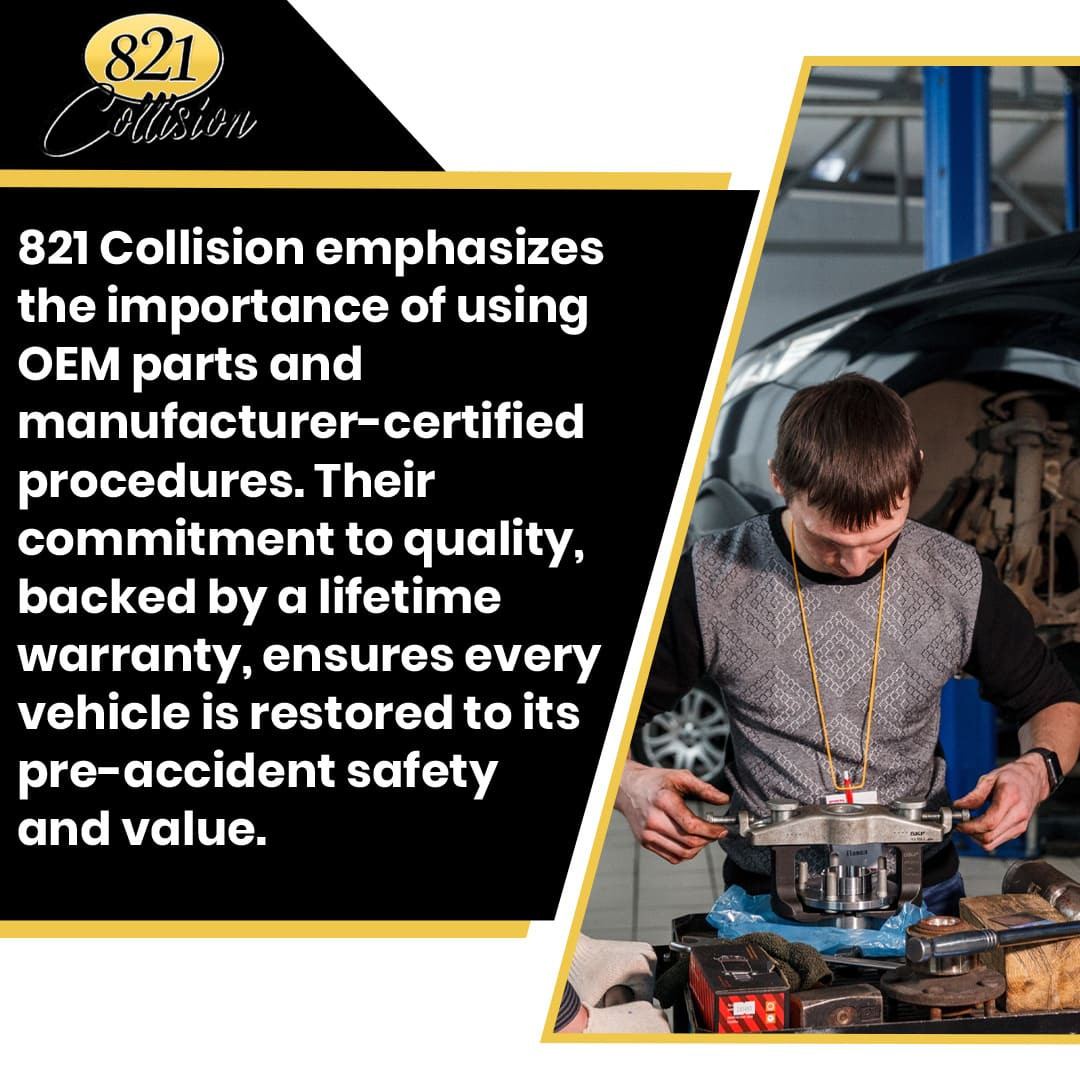 821 Collision conducts detailed pre-repair and post-repair inspections by certified technicians. This multi-step process checks frame alignment, structural integrity, and safety features, reducing errors and ensuring consistent, high-quality results.