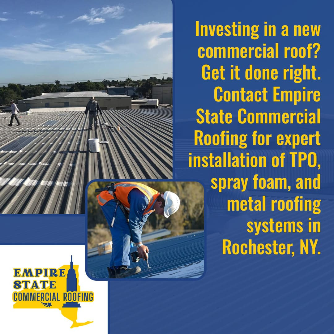 Proper installation, material selection, and routine maintenance extend your roof's lifespan and prevent costly repairs. Working with experienced, certified contractors keeps the commercial roof installation process efficient and aligned with best practices. Spray foam and TPO solutions provide energy efficiency and structural protection when applied correctly. Regular inspections and timely repairs keep your roof performing through Rochester’s harsh winters. Empire State Commercial Roofing serves businesses in Rochester, Syracuse, Painted Post, Canandaigua, Geneva, Henrietta, and surrounding areas. For expert roofing solutions, call (315) 857-6988 or visit their contact page to schedule a consultation.