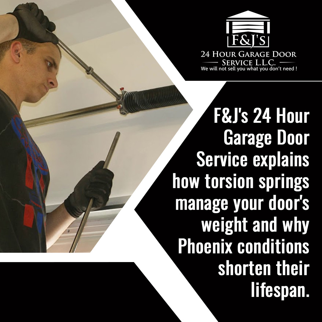 F&J’s 24 Hour Garage Door Service is a family-owned company based in Phoenix, Arizona, serving residential and commercial clients across the Valley and Prescott Valley. The company provides reliable service for every garage door spring, including torsion systems, with a focus on safety, workmanship, and honest recommendations.